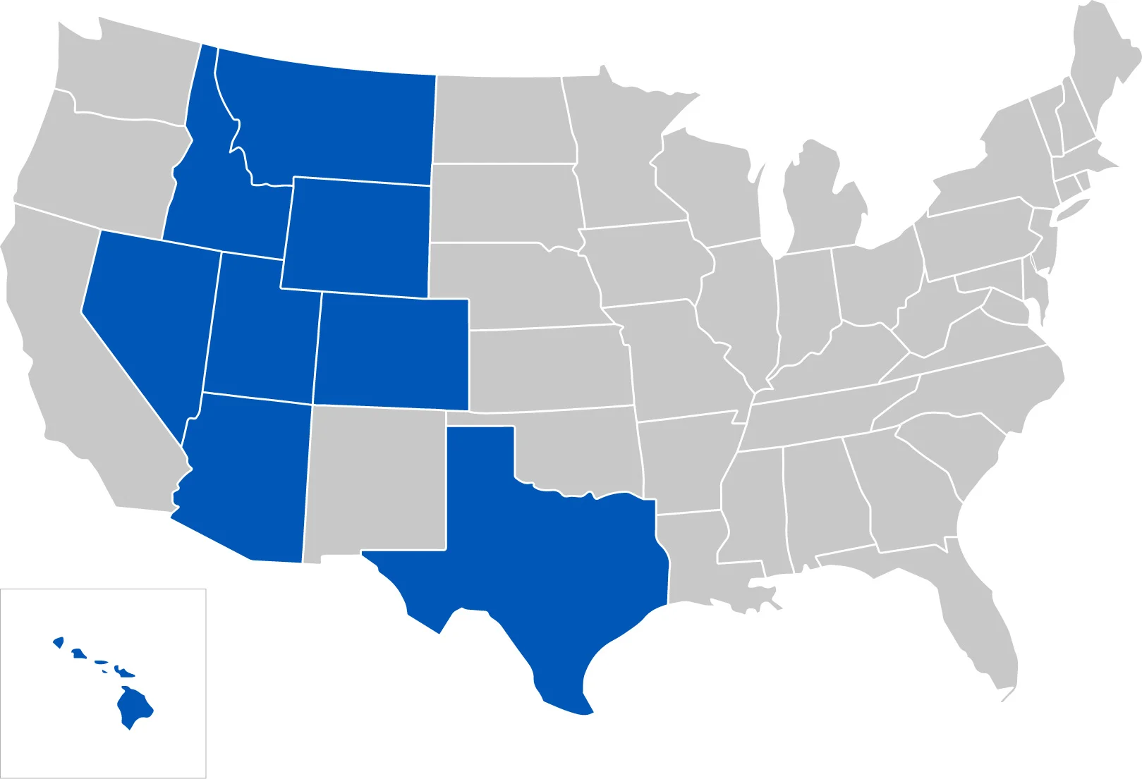 Arizona, Colorado, Hawaii, Idaho, Montana, Nevada, Texas, Utah, Wyoming